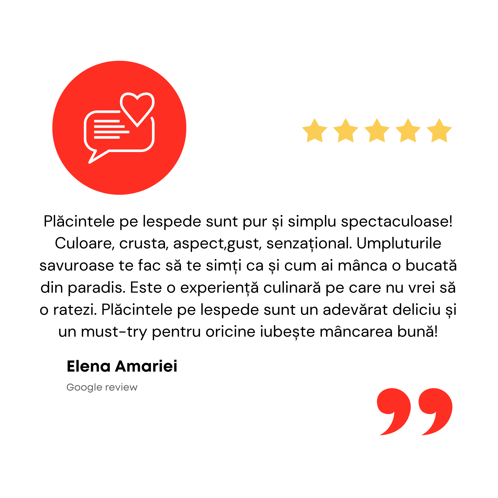 La Plăcinte pe Lespede te poți bucura de gustul tradițional al plăcintelor. Secretul nostru? Rețeta transmisă din generație în generație și faptul că plăcintele sunt coapte pe plită, fără ulei. Descoperă un loc care te duce cu gândul la “acasă” !